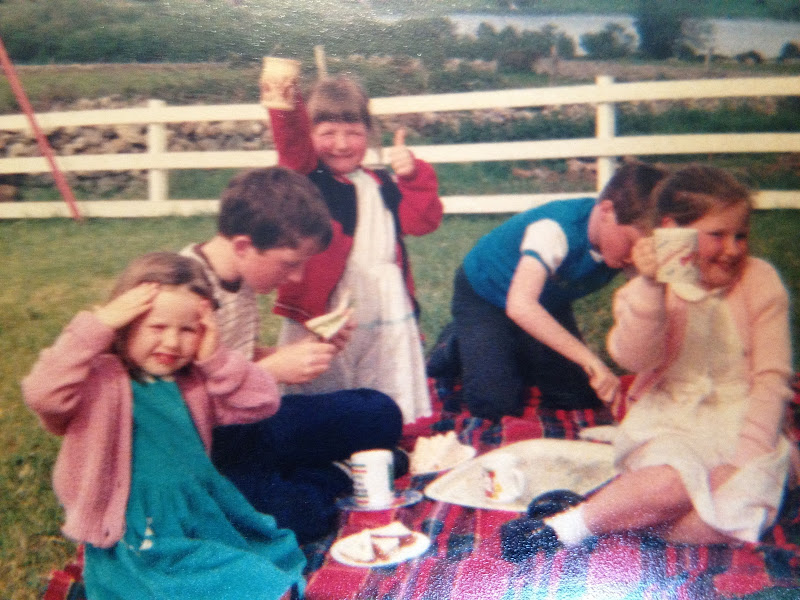 Well we’d move on and deliver the news back up the road. A chorus of perfectly placed ‘oohs’ and ‘aaaahs’, and ‘ah now’ and ‘isn’t it well for him’, and the all time favourite ‘ah go away (+/-outta that)’ would greet our tales. And then off into the day to keep ourselves occupied. Picnics were my favourite. A blanket in the lawn, all 5/6 of us out (pre-hannah/post-hannah) and then came the job of balancing the cups and plates just right that they wouldn’t fall over on the grass. We’d have ham or salmon sandwiches, biscuits, a bag of wheelies each and a sup of red lemonade. Soon, sweets would appear as if by magic, and oftentimes a secret ice cream would pop out the living room window. Lying out in the garden, torturing Louise by resting our toes on her and arguing over who gets which colour ice pop- we were blissfully carefree. There’s no business like show business they say, but I can tell you for sure- there are no picnics like Kitty’s picnics.